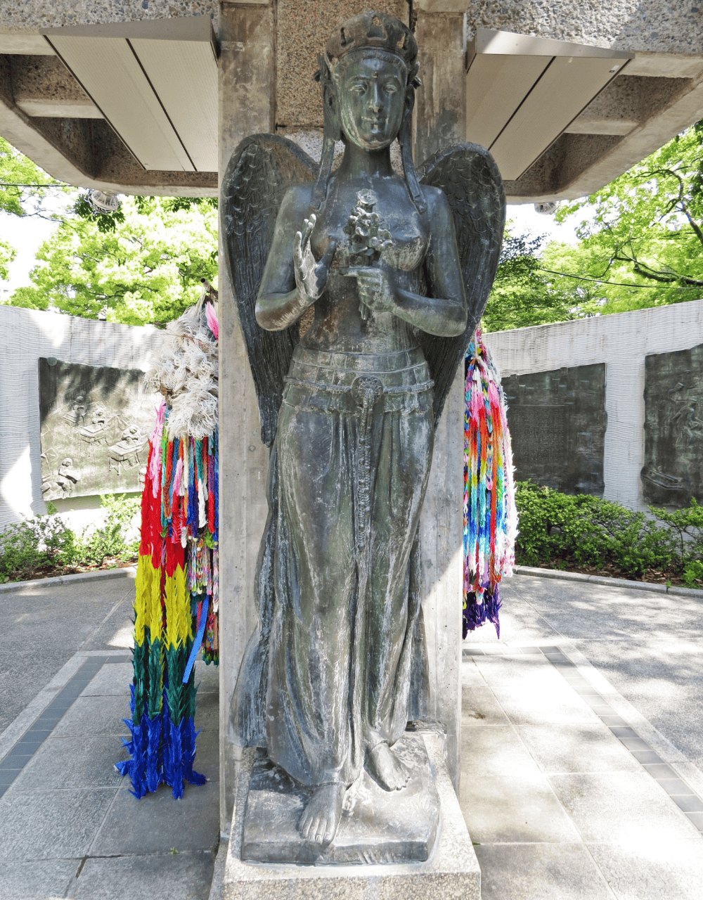 At its base is the Goddess of Peace, sculpted by Katsuzo Entsuba, and the central column holds a candle to comfort the souls of the fallen.